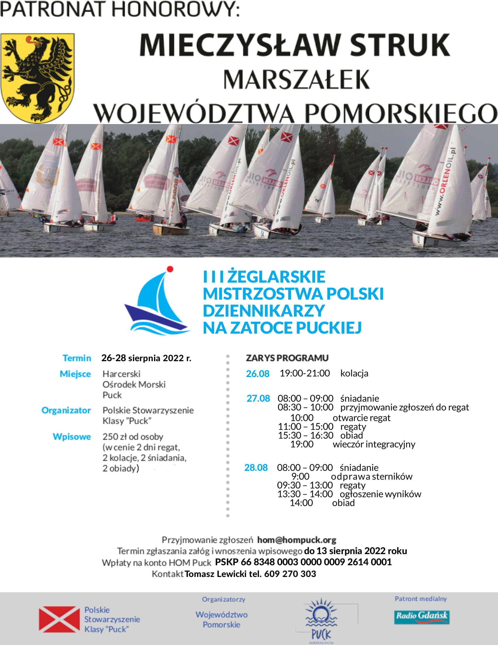 Termin zgłoszenia załóg i wnoszenia wpisowego 15.06.2022r. Zgłoszenia prosimy wysyłać na adres hom@hompuck.org